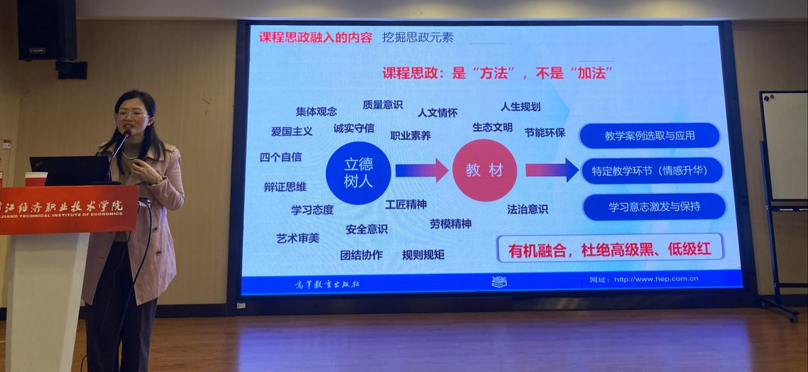2026年3月31日,公共教育学院在英语村举办有组织教研——高水平教学成果培育专题活动,特邀高等教育出版社上海事业部高职文科分社长、副编审雷芳作职业教育教材建设专题讲座,公共教育学院院长斯静亚主持,全院教师参会学习。